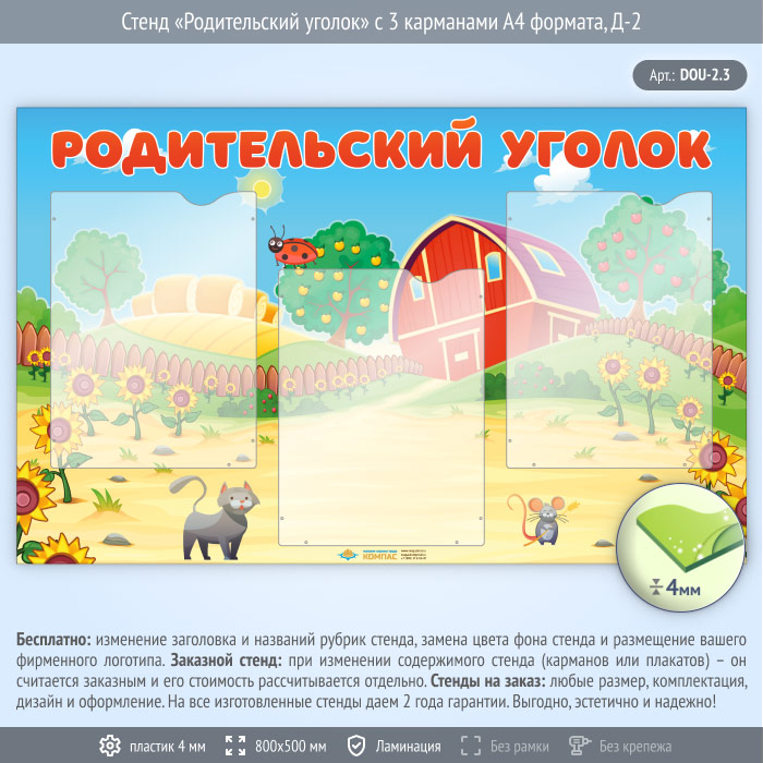 Стенд «Родительский уголок» с 3 карманами А4 формата (DOU-2.3) в Кызыле купить