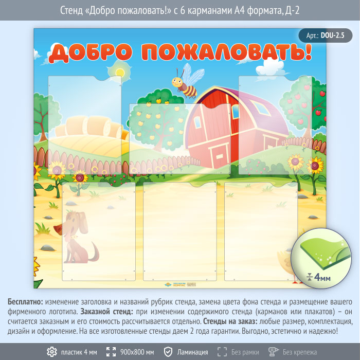 Стенд «Добро пожаловать!» с 6 карманами А4 формата (DOU-2.5) в Кызыле купить