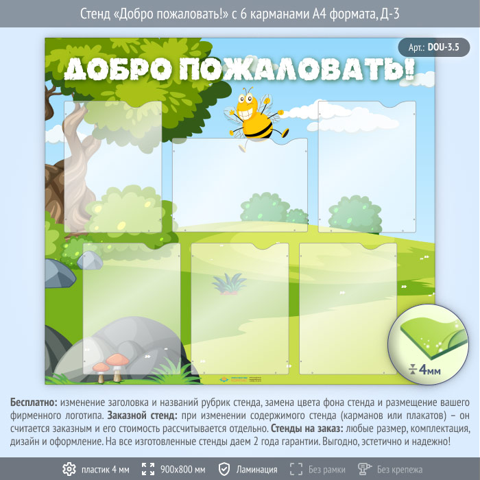 Стенд «Добро пожаловать!» с 6 карманами А4 формата (DOU-3.5) в Кызыле купить