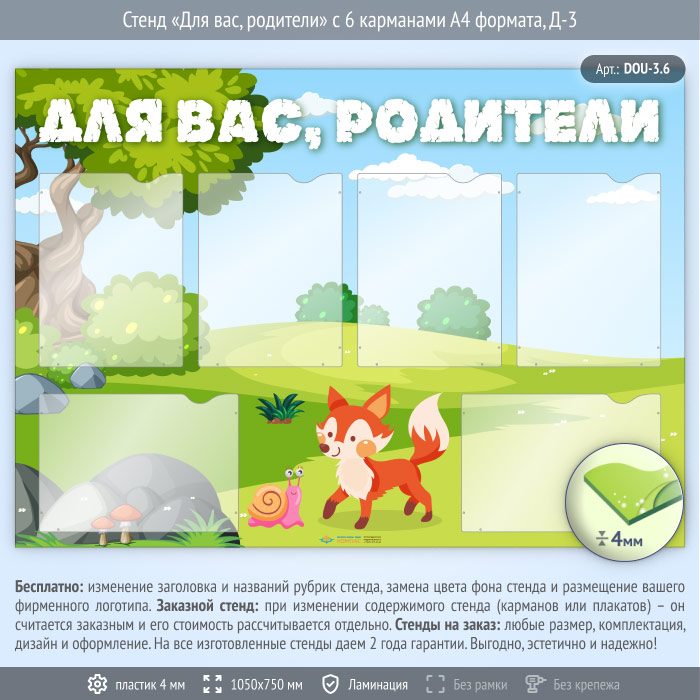 Стенд «Для вас, родители» с 6 карманами А4 формата (DOU-3.6) в Кызыле купить