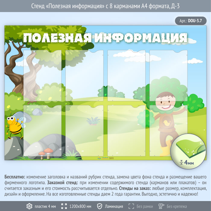 Стенд «Полезная информация» с 8 карманами А4 формата (DOU-3.7) в Кызыле купить