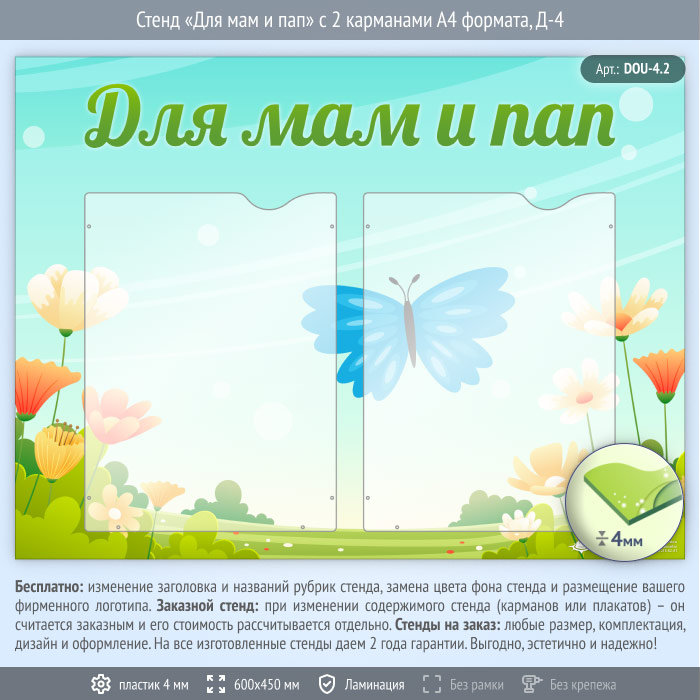 Стенд «Для мам и пап» с 2 карманами А4 формата (DOU-4.2) в Кызыле купить
