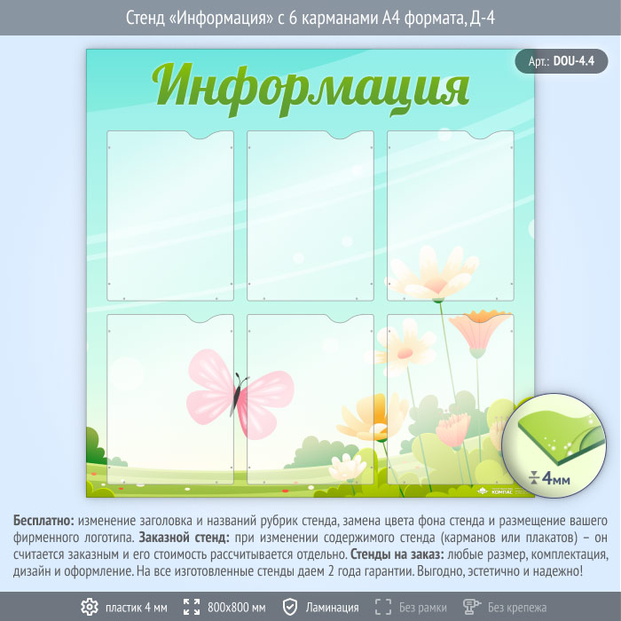 Стенд «Информация» с 6 карманами А4 формата (DOU-4.4) в Кызыле купить