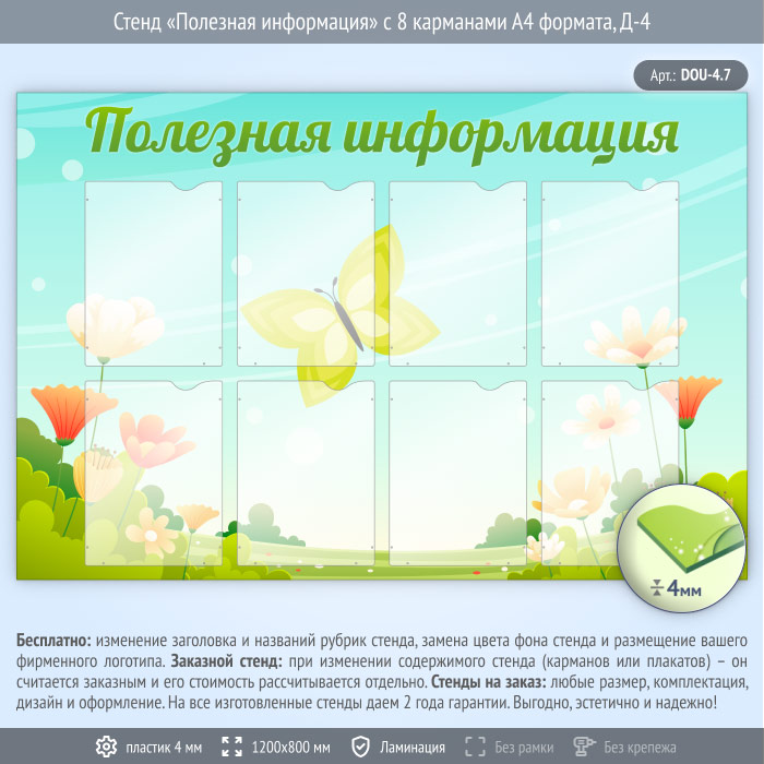 Стенд «Полезная информация» с 8 карманами А4 формата (DOU-4.7) в Кызыле купить
