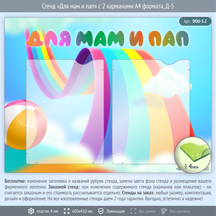 Стенд «Для мам и пап» с 2 карманами А4 формата (DOU-5.2) в Кызыле купить