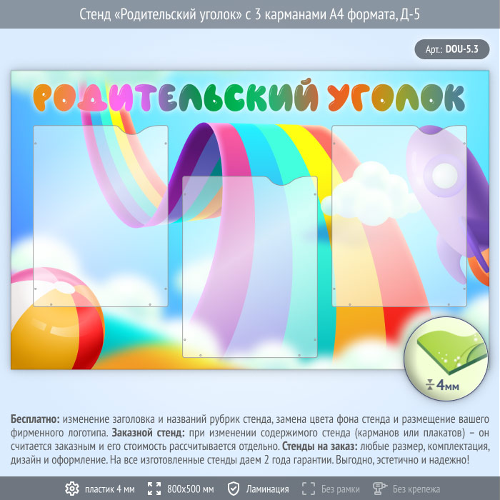 Стенд «Родительский уголок» с 3 карманами А4 формата (DOU-5.3) в Кызыле купить