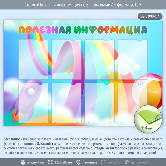 Стенд «Полезная информация» с 8 карманами А4 формата (DOU-5.7) в Кызыле купить