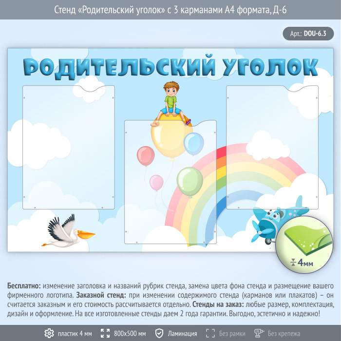 Стенд «Родительский уголок» с 3 карманами А4 формата (DOU-6.3) в Кызыле купить