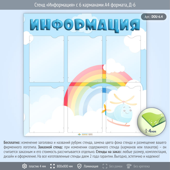 Стенд «Информация» с 6 карманами А4 формата (DOU-6.4) в Кызыле купить