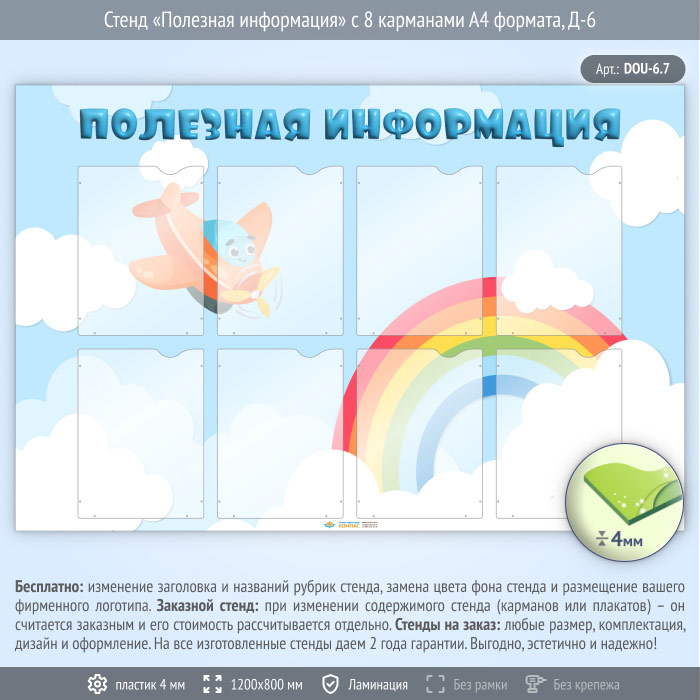 Стенд «Полезная информация» с 8 карманами А4 формата (DOU-6.7) в Кызыле купить