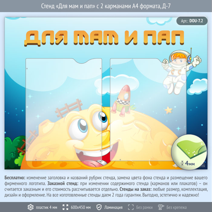 Стенд «Для мам и пап» с 2 карманами А4 формата (DOU-7.2) в Кызыле купить