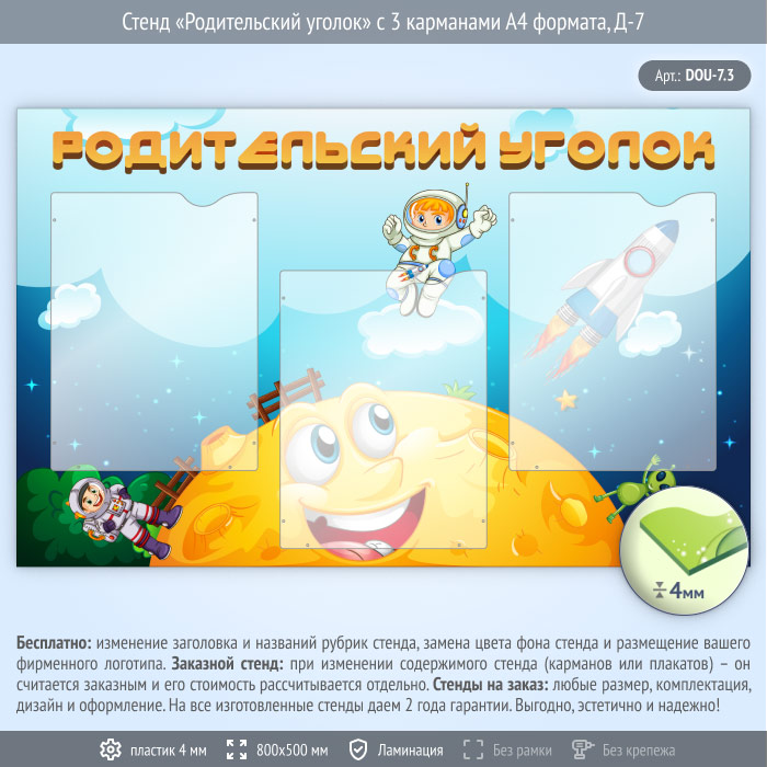 Стенд «Родительский уголок» с 3 карманами А4 формата (DOU-7.3) в Кызыле купить