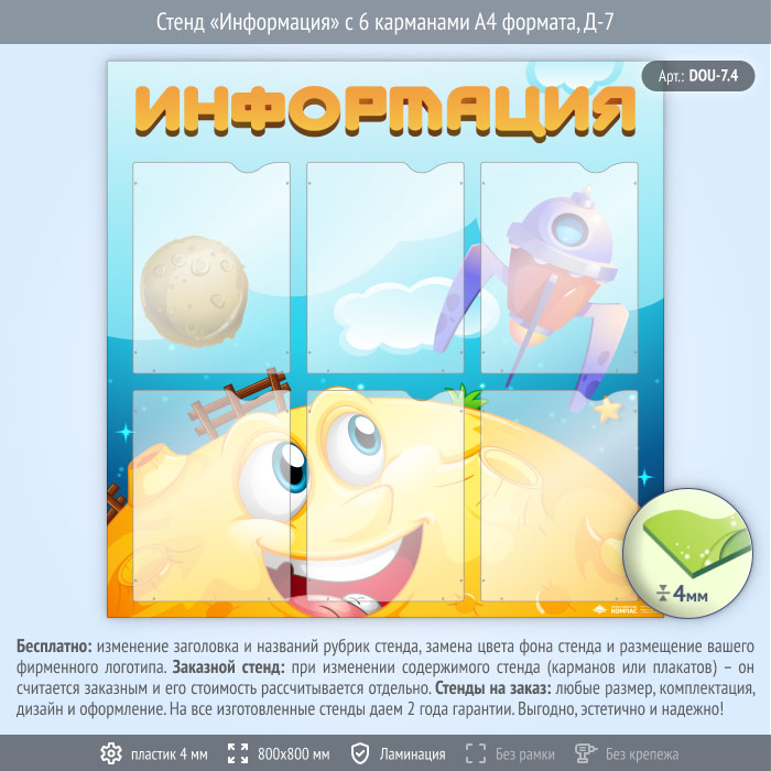 Стенд «Информация» с 6 карманами А4 формата (DOU-7.4) в Кызыле купить