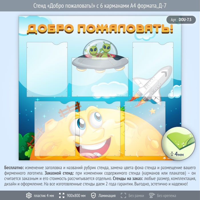 Стенд «Добро пожаловать!» с 6 карманами А4 формата (DOU-7.5) в Кызыле купить