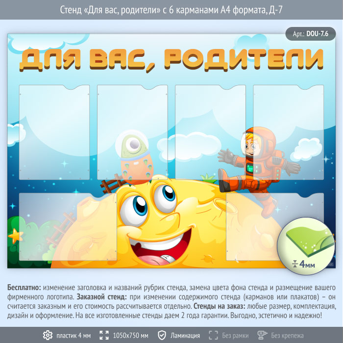 Стенд «Для вас, родители» с 6 карманами А4 формата (DOU-7.6) в Кызыле купить