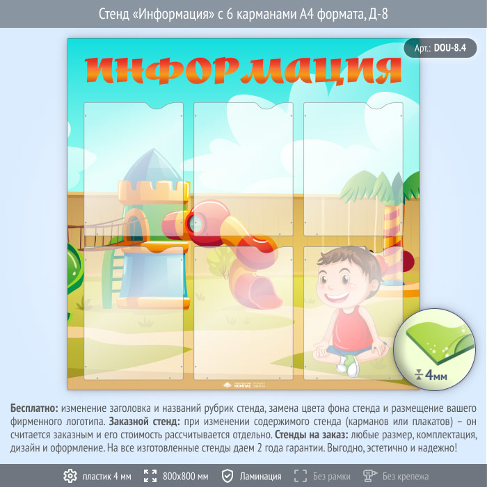 Стенд «Информация» с 6 карманами А4 формата (DOU-8.4) в Кызыле купить