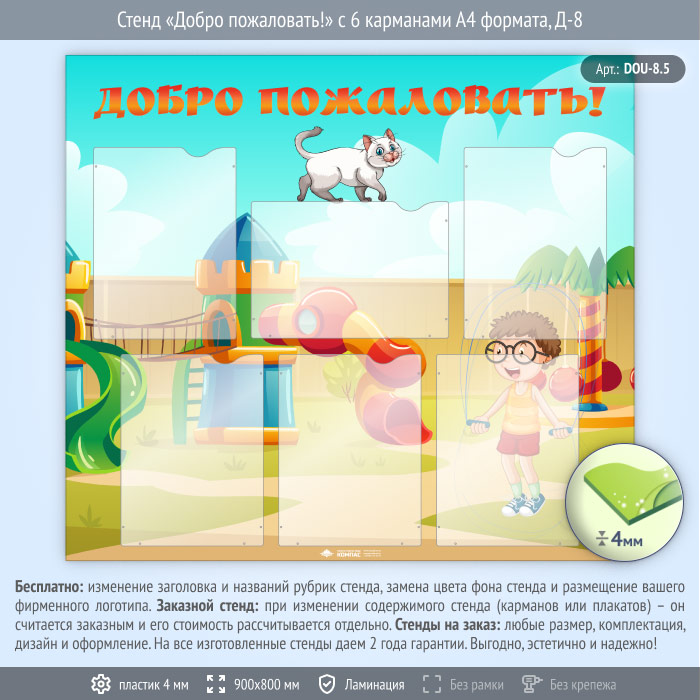 Стенд «Добро пожаловать!» с 6 карманами А4 формата (DOU-8.5) в Кызыле купить