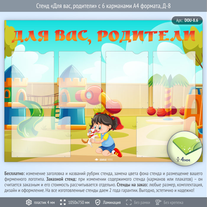 Стенд «Для вас, родители» с 6 карманами А4 формата (DOU-8.6) в Кызыле купить