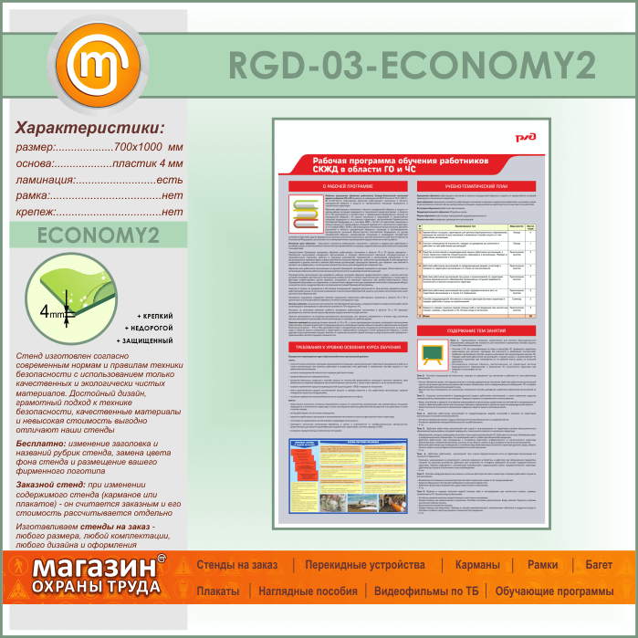 Стенд «Рабочая программа обучения работников СКЖД в области ГО и ЧС» (RGD-03-ECONOMY2) в Кызыле купить