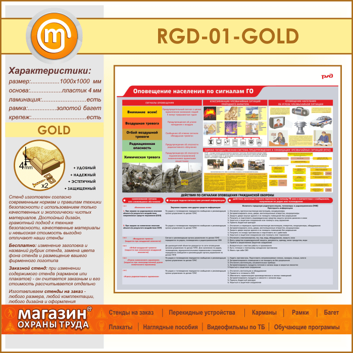 Стенд «Оповещение населения по сигналам ГО» (RGD-01-GOLD) в Кызыле купить