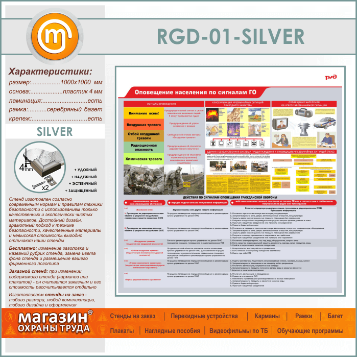 Стенд «Оповещение населения по сигналам ГО» (RGD-01-SILVER) в Кызыле купить