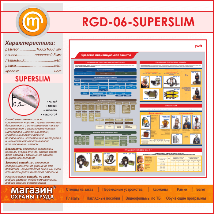 Стенд «Средства индивидуальной защиты» (RGD-06-SUPERSLIM) в Кызыле купить