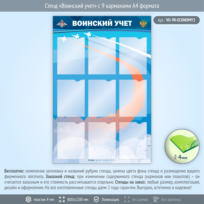 Стенд «Воинский учет» с 9 карманами А4 формата (VU-9K-ECONOMY2) в Кызыле купить