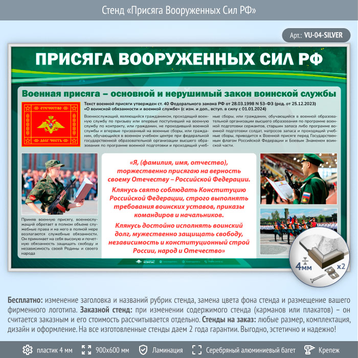 Стенд «Присяга Вооруженных Сил РФ» (VU-04-SILVER) в Кызыле купить