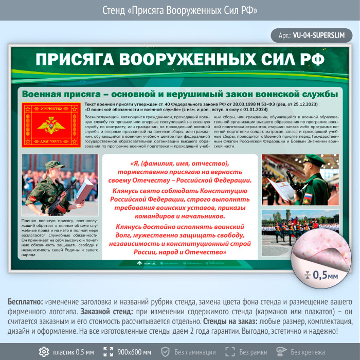 Стенд «Присяга Вооруженных Сил РФ» (VU-04-SUPERSLIM) в Кызыле купить