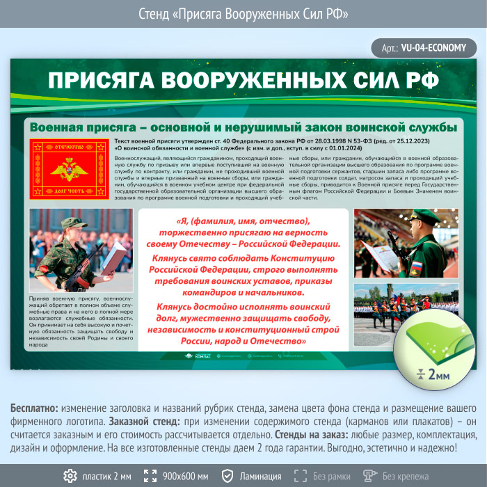 Стенд «Присяга Вооруженных Сил РФ» (VU-04-ECONOMY) в Кызыле купить