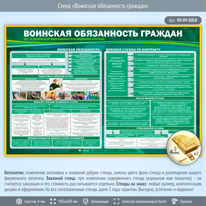 Стенд «Воинская обязанность граждан» (VU-09-GOLD) в Кызыле купить