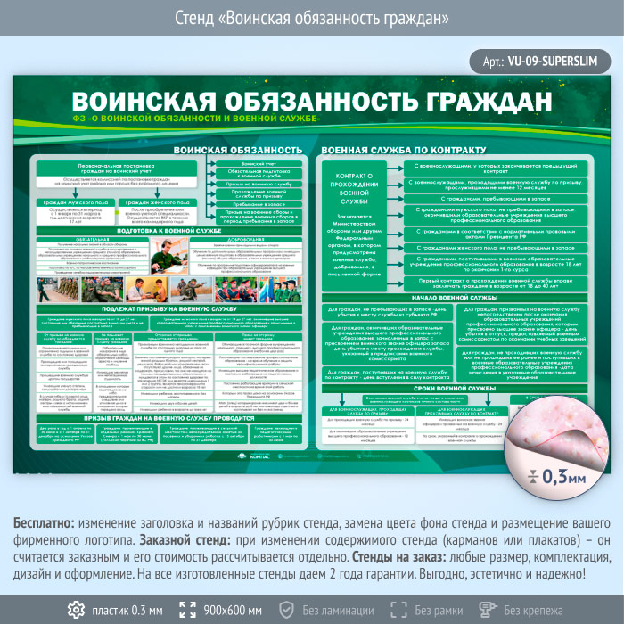Стенд «Воинская обязанность граждан» (VU-09-SUPERSLIM) в Кызыле купить