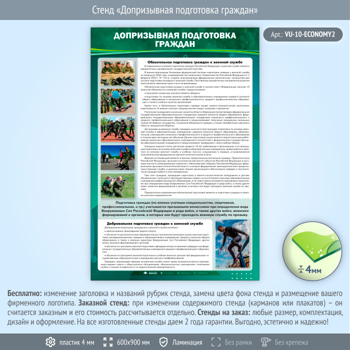 Стенд «Допризывная подготовка граждан» (VU-10-ECONOMY2) в Кызыле купить