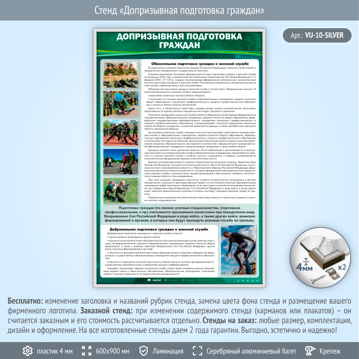Стенд «Допризывная подготовка граждан» (VU-10-SILVER) в Кызыле купить