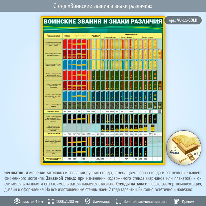 Стенд «Воинские звания и знаки различия» (VU-11-GOLD) в Кызыле купить