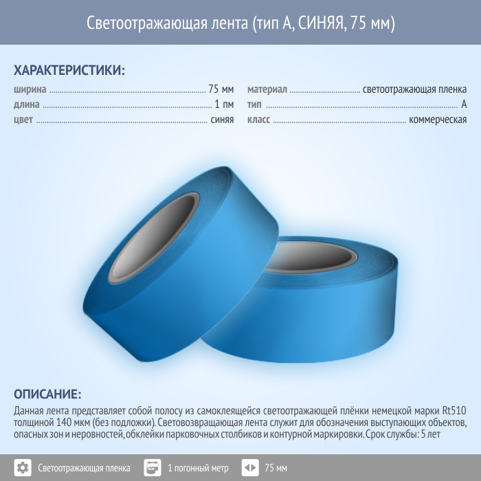 Светоотражающая однородная лента (тип А, СИНЯЯ, 75 мм х 1 п.м.) в Кызыле купить