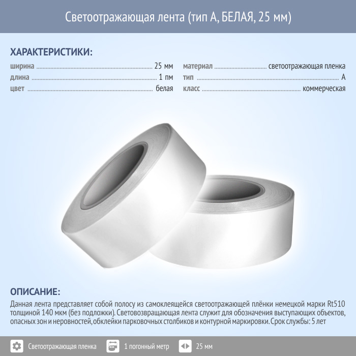 Светоотражающая однородная лента (тип А, БЕЛАЯ, 25 мм х 1 п.м.) в Кызыле купить