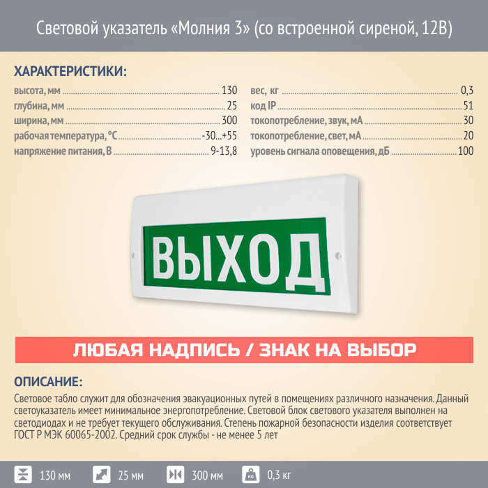 Световой указатель Молния 3 (со встроенной сиреной, 12В) в Кызыле купить