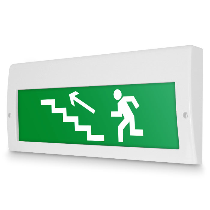 Световое табло «Направление к эвакуационному выходу по лестнице вверх (левосторонний)», Молния (220В РИП) в Кызыле купить
