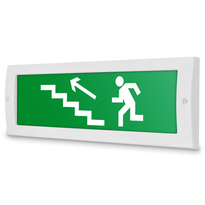 Световое табло «Направление к эвакуационному выходу по лестнице вверх (левосторонний)», Молния (12В) в Кызыле купить