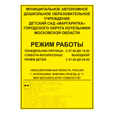 Тактильная вывеска с дублированием азбукой Брайля, ДС8