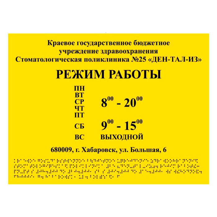 Тактильная вывеска с дублированием азбукой Брайля, ДС10 (полистирол 3 мм, 600х500 мм) в Кызыле купить