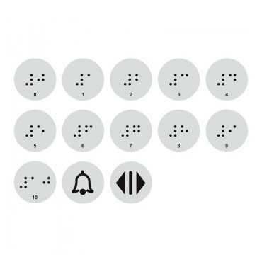 Тактильные наклейки для кнопок лифта с 0 по 10 этаж (набор), ДС95 (пленка, 20х20 мм, серебристый) в Кызыле купить