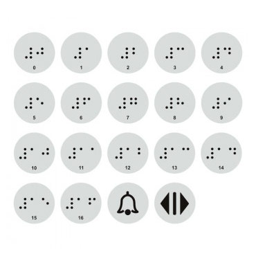 Тактильные наклейки для кнопок лифта с 0 по 16 этаж (набор) , ДС96 (пленка, 20х20 мм, серебристый) в Кызыле купить