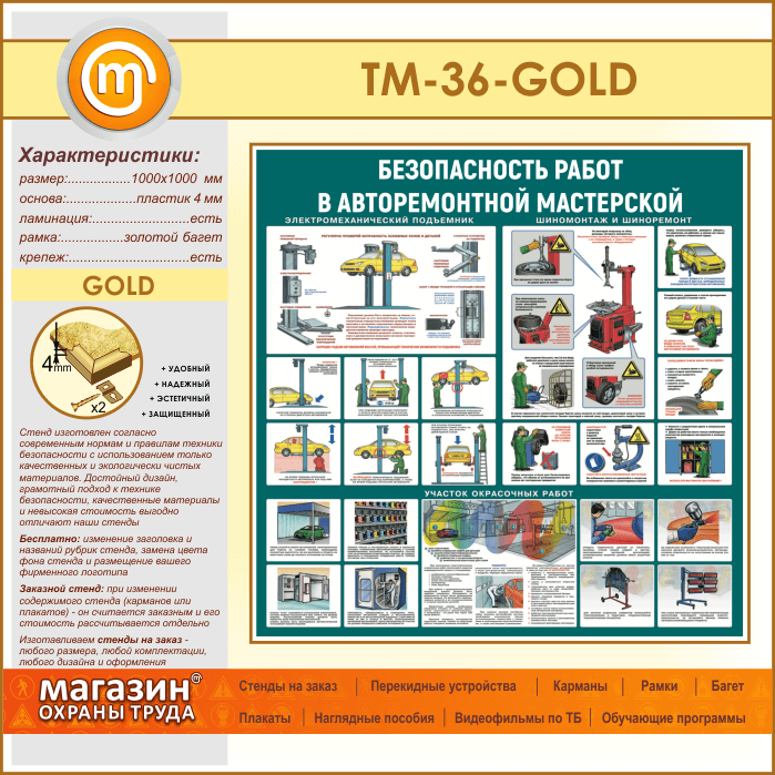 Стенд «Безопасность работ в авторемонтной мастерской» (TM-36-GOLD) в Кызыле купить