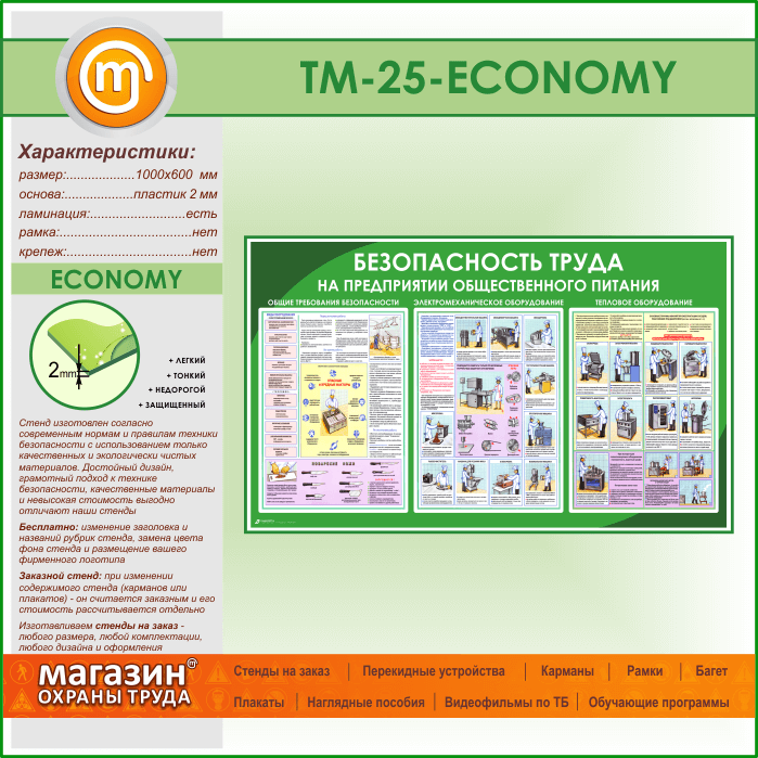 Стенд «Безопасность труда на предприятиях общественного питания» (TM-25-ECONOMY) в Кызыле купить
