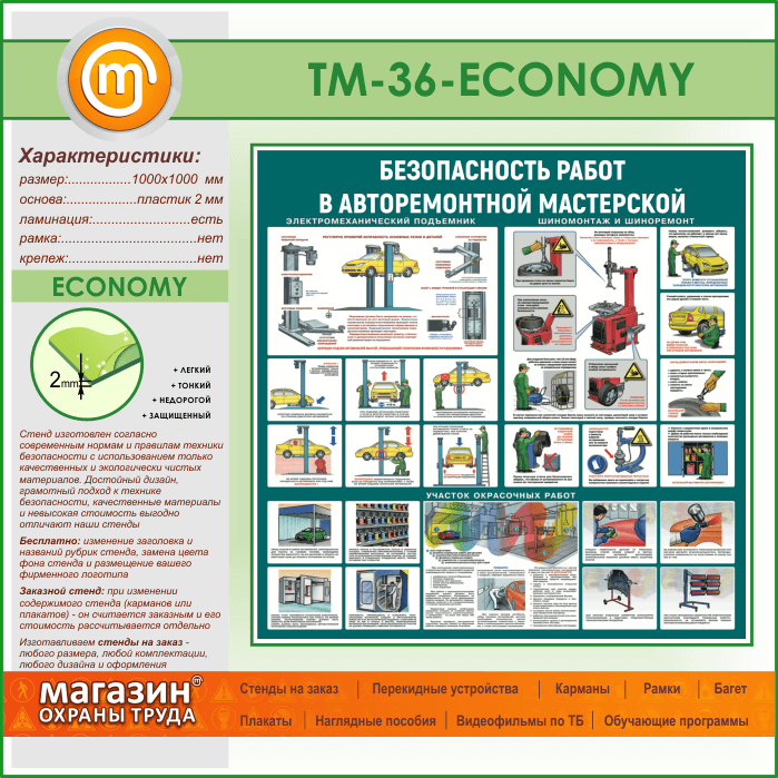Стенд «Безопасность работ в авторемонтной мастерской» (TM-36-ECONOMY) в Кызыле купить