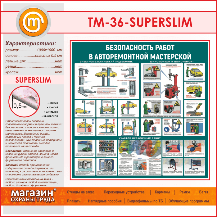 Стенд «Безопасность работ в авторемонтной мастерской» (TM-36-SUPERSLIM) в Кызыле купить