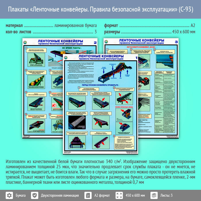 Плакаты «Ленточные конвейеры. Правила безопасной эксплуатации» (С-93, ламинированная бумага, А2, 3 листа) в Кызыле купить