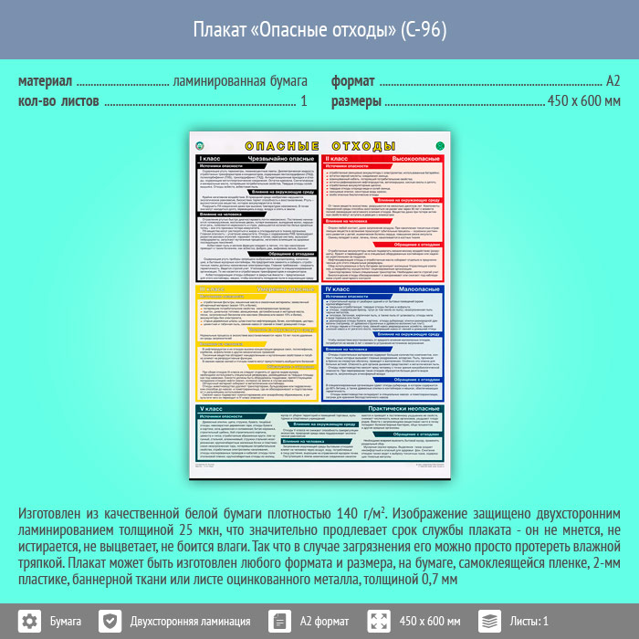 Плакат «Опасные отходы» (С-96, ламинированная бумага, А2, 1 лист) в Кызыле купить